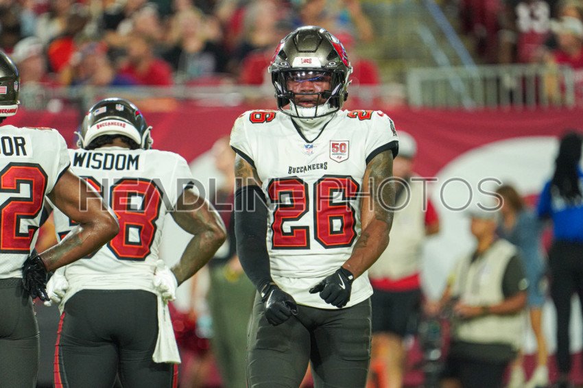 Tampa Bay, Florida, USA, August 23, 2025, Tampa Bay Buccaneers player Kaevon Merriweather #26 at Raymond James Stadium. (Photo Credit: Marty Jean-Louis)