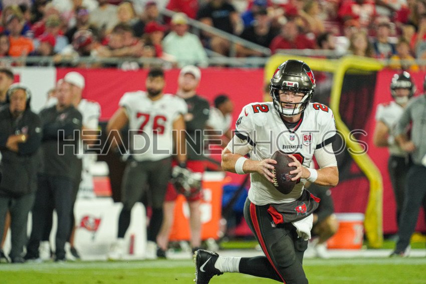 Tampa Bay, Florida, USA, August 23, 2025, Tampa Bay Buccaneers quarterback Kyle Trask #2 at Raymond James Stadium. (Photo Credit: Marty Jean-Louis)