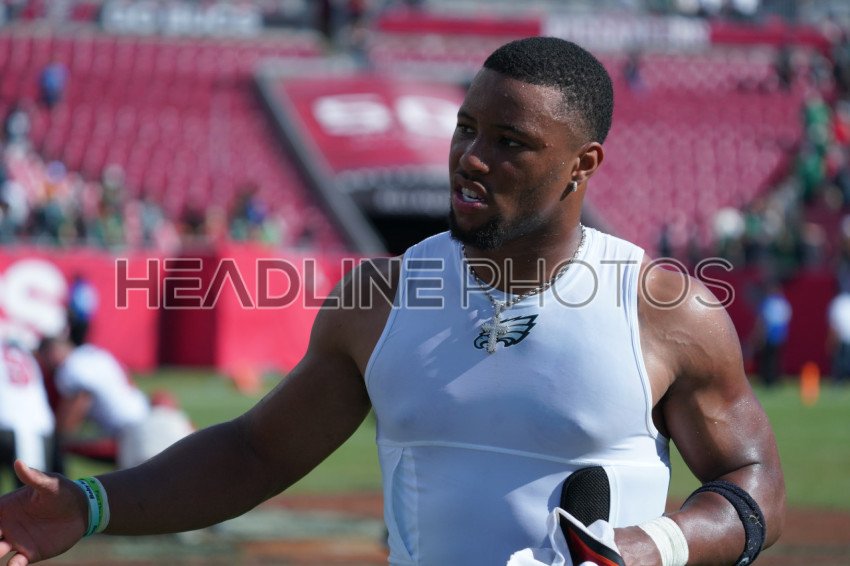 Tampa Bay, Florida, USA, September 28, 2025, Philadelphia Eagles runningback Saquon Barkley #26 at Raymond James Stadium. (Photo Credit: Marty Jean-Louis)