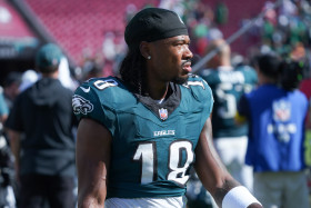Tampa Bay, Florida, USA, September 28, 2025, Philadelphia Eagles player John Metchie #18 at Raymond James Stadium. (Photo Credit: Marty Jean-Louis)