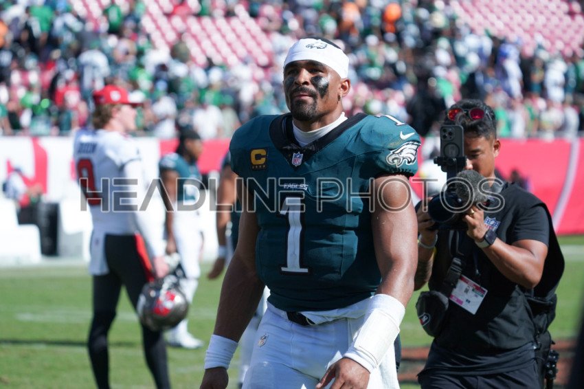 Tampa Bay, Florida, USA, September 28, 2025, Philadelphia Eagles quarterback Jalen Hurts #1 at Raymond James Stadium. (Photo Credit: Marty Jean-Louis)