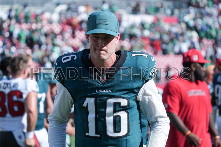 Tampa Bay, Florida, USA, September 28, 2025, Philadelphia Eagles quarterback Tanner McKee #16 at Raymond James Stadium. (Photo Credit: Marty Jean-Louis)