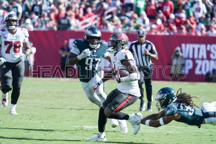 Tampa Bay, Florida, USA, September 28, 2025, Tampa Bay Buccaneers player Rachaad White #1 on the run at Raymond James Stadium. (Photo Credit: Marty Jean-Louis)