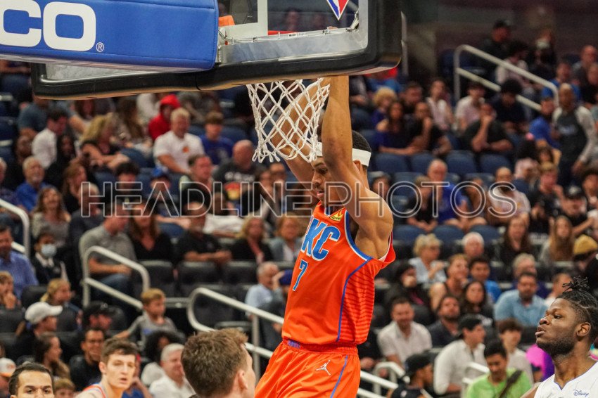 Orlando, Florida, USA, March 20, 2022, Oklahoma Thunder Power Forward Darius Bazley #7 makes a dunk during the first half at the Amway Center. (Photo Credit: Marty Jean-Louis)
