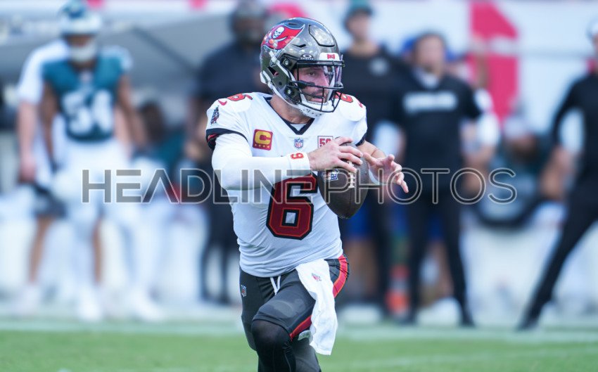 Tampa Bay, Florida, USA, September 28, 2025, Tampa Bay Buccaneers quarterback Baker Mayfield #6 looks to make a pass at Raymond James Stadium. (Photo Credit: Marty Jean-Louis)