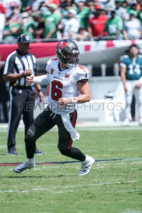 Tampa Bay, Florida, USA, September 28, 2025, Tampa Bay Buccaneers quarterback Baker Mayfield #6 at Raymond James Stadium. (Photo Credit: Marty Jean-Louis)