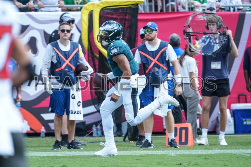 Tampa Bay, Florida, USA, September 28, 2025, Philadelphia Eagles quarterback Jalen Hurts #1 makes a run at Raymond James Stadium. (Photo Credit: Marty Jean-Louis)