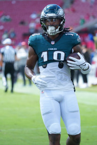 Tampa Bay, Florida, USA, September 28, 2025, Philadelphia Eagles wide receiver John Metchie #18 warming up at Raymond James Stadium. (Photo Credit: Marty Jean-Louis)