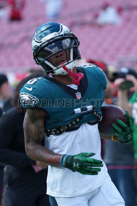 Tampa Bay, Florida, USA, September 28, 2025, Philadelphia Eagles wide receiver DeVonta Smith #6 warming up at Raymond James Stadium. (Photo Credit: Marty Jean-Louis)