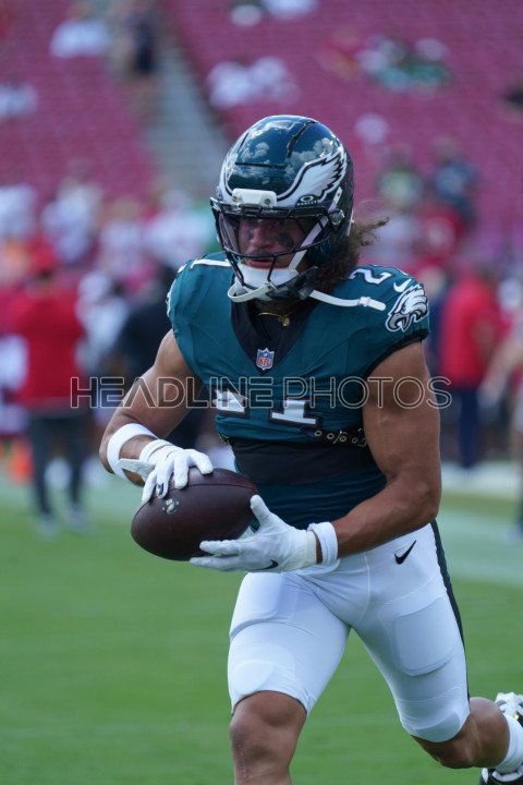 Tampa Bay, Florida, USA, September 28, 2025, Philadelphia Eagles safety Sydney Brown #21 warming up at Raymond James Stadium. (Photo Credit: Marty Jean-Louis)