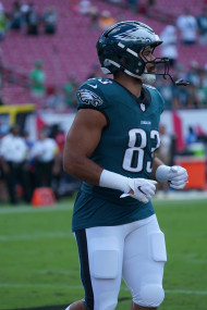 Tampa Bay, Florida, USA, September 28, 2025, Philadelphia Eagles tight end Kylen Granson #83 warming up at Raymond James Stadium. (Photo Credit: Marty Jean-Louis)