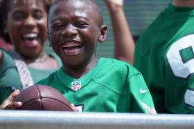 Tampa Bay, Florida, USA, September 28, 2025, Philadelphia Eagles fan overjoy after receiving a ball from Saquon Barkley #26 at Raymond James Stadium. (Photo Credit: Marty Jean-Louis)
