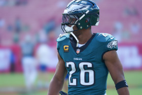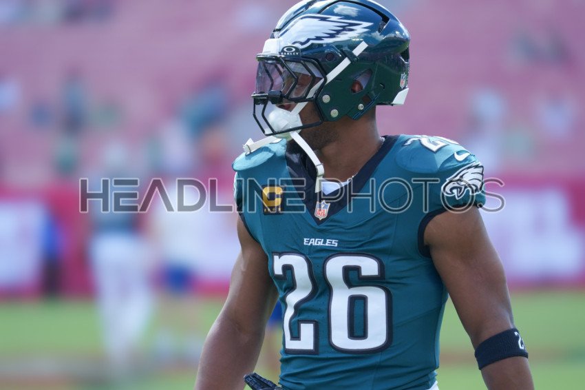 Tampa Bay, Florida, USA, September 28, 2025, Philadelphia Eagles runningback Saquon Barkley #26 warms up at Raymond James Stadium. (Photo Credit: Marty Jean-Louis)
