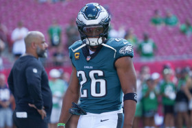 Tampa Bay, Florida, USA, September 28, 2025, Philadelphia Eagles runningback Saquon Barkley #26 warms up at Raymond James Stadium. (Photo Credit: Marty Jean-Louis)