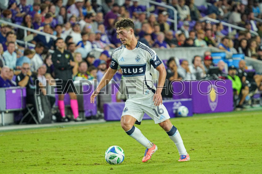 Orlando, Florida, USA, October 11, 2025, Vancouver Whitecaps FC player Sebastian Berhalter #16 runs up field at Inter&Co Stadium. (Photo Credit: Marty Jean-Louis)