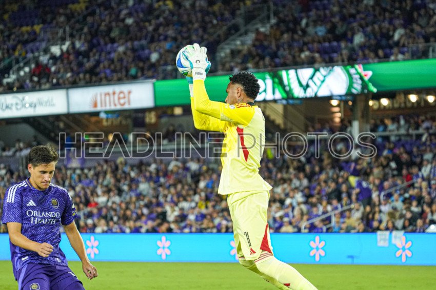 Orlando, Florida, USA, October 11, 2025, Orlando City SC goalkeeper Pedro Gallese #1 makes a save at Inter&Co Stadium. (Photo Credit: Marty Jean-Louis)