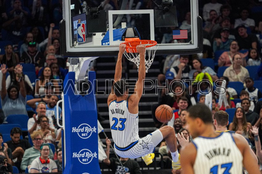 Orlando, Florida, USA, October 16, 2025, Orlando Magic player Tristan da Silva #23 makes a dunk at the Kia Center. (Photo Credit: Marty Jean-Louis)