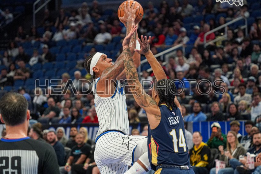 Orlando, Florida, USA, October 16, 2025, Orlando Magic forward Paolo Banchero #5 attempt to make a basket at the Kia Center. (Photo Credit: Marty Jean-Louis)