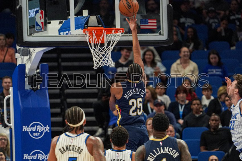 Orlando, Florida, USA, October 16, 2025, New Orleans Pelicans forward Trey Murphy III #25 makes a layup at the Kia Center. (Photo Credit: Marty Jean-Louis)