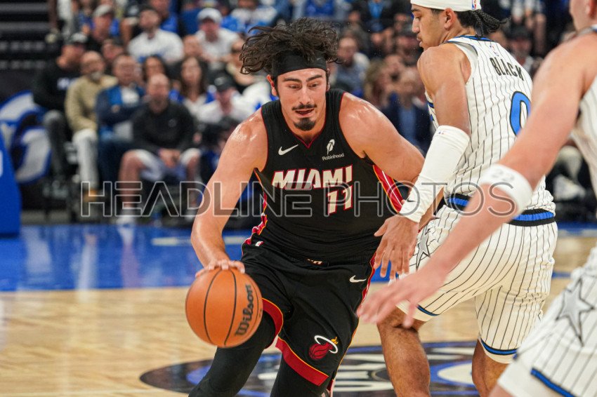 Orlando, Florida, USA, October 22, 2025, Miami Heat forward Jaime Jaquez Jr. #11 rushes forward at the Kia Center. (Photo Credit: Marty Jean-Louis)
