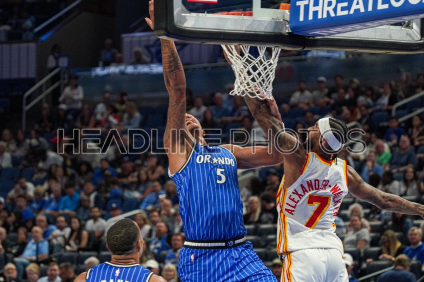 Orlando, Florida, USA, Ocober 24, 2025, Orlando Magic forward Paolo Banchero #5 attempt to score at the Kia Center. (Photo Credit: Marty Jean-Louis)