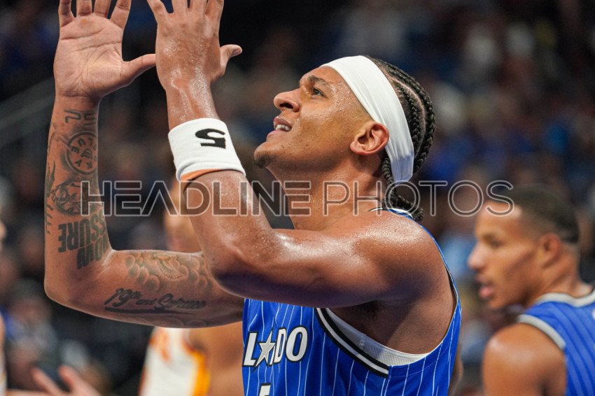 Orlando, Florida, USA, Ocober 24, 2025, Orlando Magic forward Paolo Banchero #5 reacts after scoring at the Kia Center. (Photo Credit: Marty Jean-Louis)