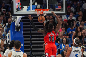 Orlando, Florida, USA, October 25, 2025, Chicago Bulls guard Ayo Dosunmu #11 makes a dunk at the Kia Center. (Photo Credit: Marty Jean-Louis)