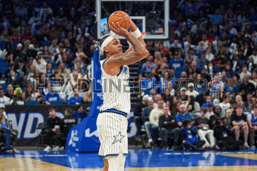 Orlando, Florida, USA, October 25, 2025, Orlando Magic player Paolo Banchero #5 shoots a three at the Kia Center. (Photo Credit: Marty Jean-Louis)