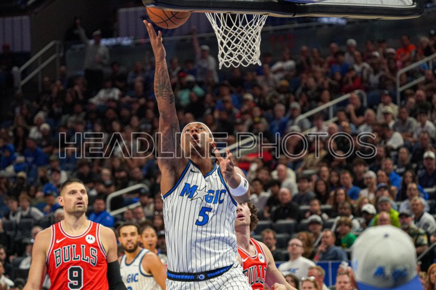 Orlando, Florida, USA, October 25, 2025, Orlando Magic forward Paolo Banchero #5 attempt to score at the Kia Center. (Photo Credit: Marty Jean-Louis)