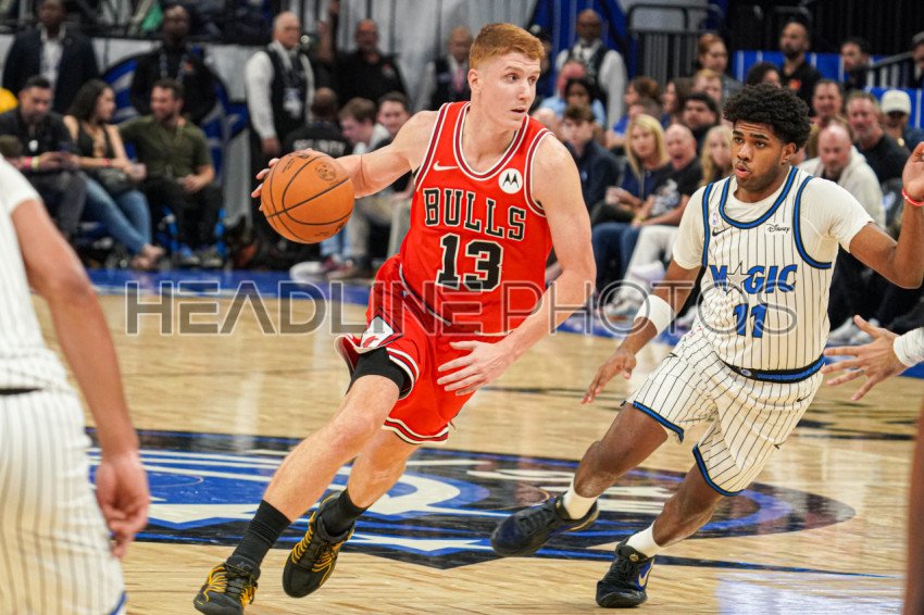 Orlando, Florida, USA, October 25, 2025, Chicago Bulls player Kevin Huerter #13 run pass Jase Richardson #11 at the Kia Center. (Photo Credit: Marty Jean-Louis)