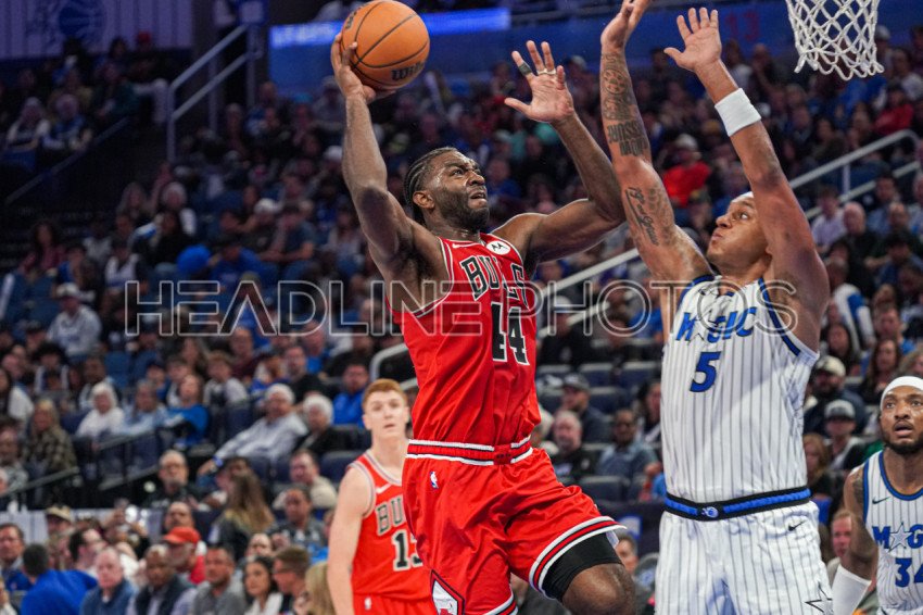 Orlando, Florida, USA, October 25, 2025, Chicago Bulls forward Patrick Williams #44 attempt to make a dunk at the Kia Center. (Photo Credit: Marty Jean-Louis)