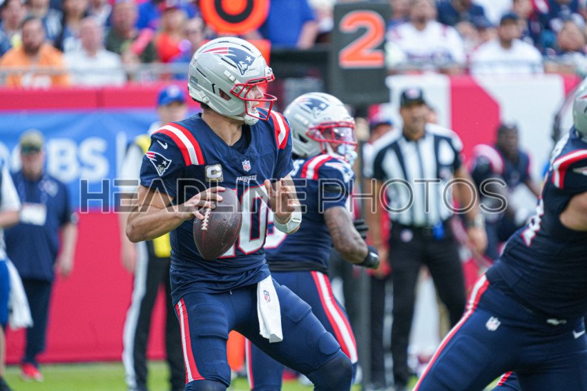 Tampa Bay, Florida, USA, November 9, 2025, New England Patriots quarterback Drake Maye #10 makes a pass at Raymond James Stadium. (Photo Credit: Marty Jean-Louis)
