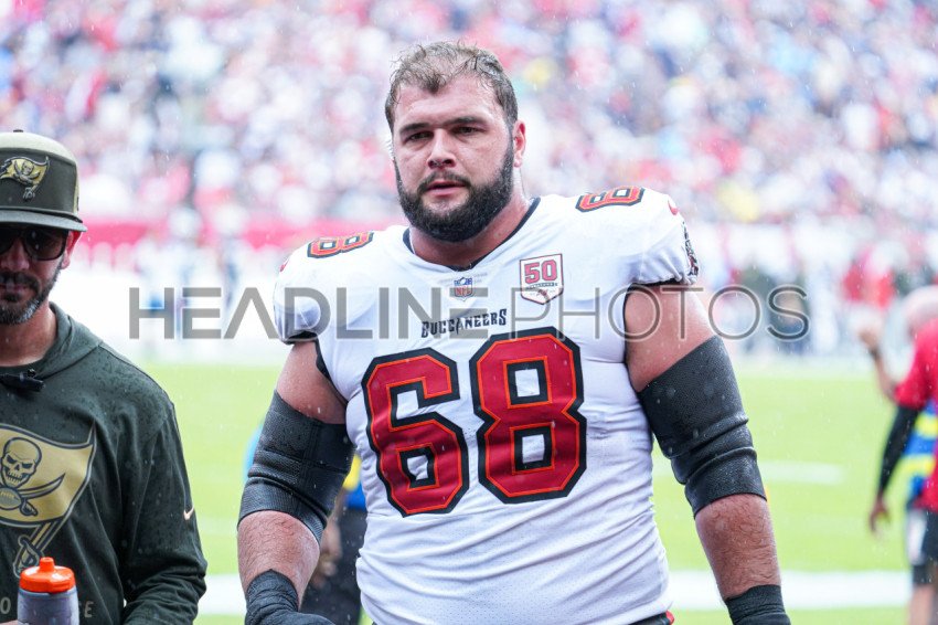 Tampa Bay, Florida, USA, November 9, 2025, Tampa Bay Buccaneers player Ben Bredeson #68 heads back to the locker after potential injury at Raymond James Stadium. (Photo Credit: Marty Jean-Louis)
