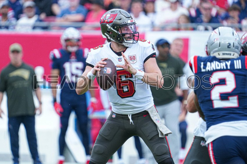 Tampa Bay, Florida, USA, November 9, 2025, Tampa Bay Buccaneers quarterback Baker Mayfield #6 makes a pass at Raymond James Stadium. (Photo Credit: Marty Jean-Louis)
