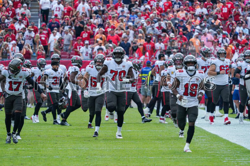 Tampa Bay, Florida, USA, November 9, 2025, Tampa Bay Buccaneers players arriving on the field at Raymond James Stadium. (Photo Credit: Marty Jean-Louis)