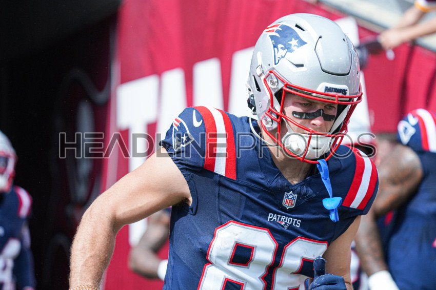 Tampa Bay, Florida, USA, November 9, 2025, New England Patriots player Efton Chism III #86 runs out of the tunnel at Raymond James Stadium. (Photo Credit: Marty Jean-Louis)