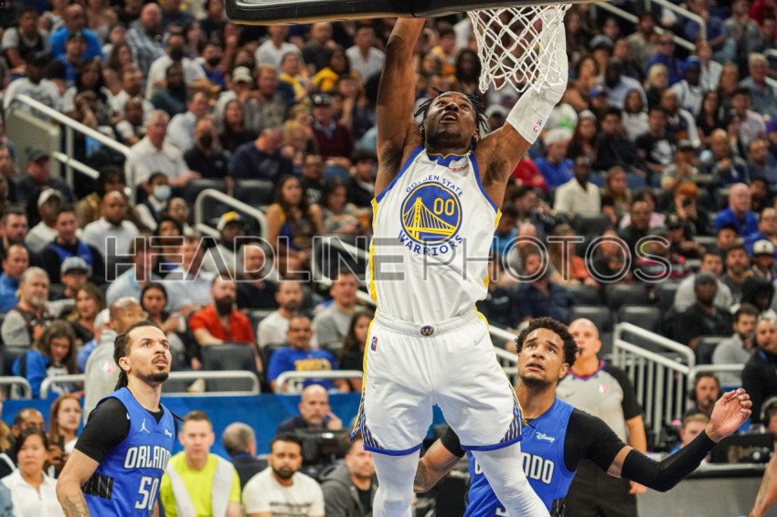 Orlando, Florida, USA, March 22, 2022, Golden State Warriors Power Forward Jonathan Kuminga #00 makes a dunk against the Orlando Magic at the Amway Center. (Photo Credit: Marty Jean-Louis)