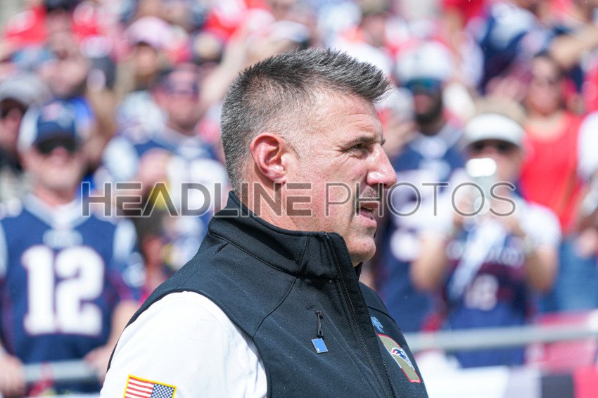 Tampa Bay, Florida, USA, November 9, 2025, New England Patriots head coach Mike Vrabel at Raymond James Stadium. (Photo Credit: Marty Jean-Louis)