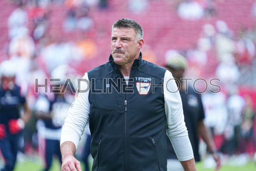 Tampa Bay, Florida, USA, November 9, 2025, New England Patriots head coach Mike Vrabel at Raymond James Stadium. (Photo Credit: Marty Jean-Louis)