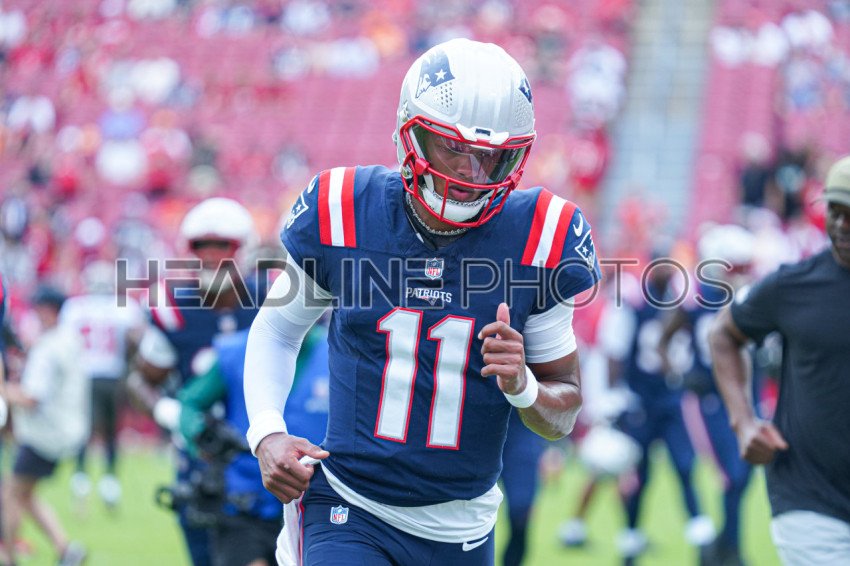 Tampa Bay, Florida, USA, November 9, 2025, New England Patriots quarterback Joshua Dobbs #11 at Raymond James Stadium. (Photo Credit: Marty Jean-Louis)
