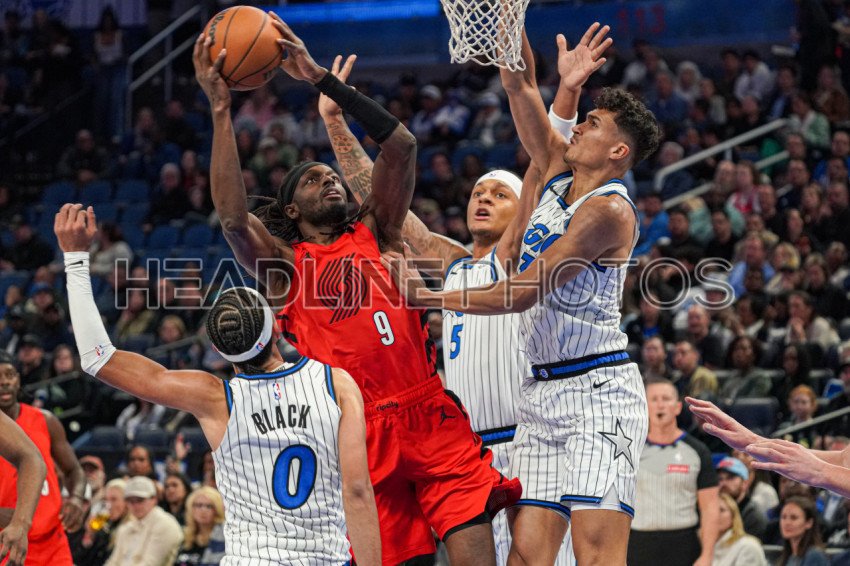 Orlando, Florida, USA, November 10, 2025, Portland Trail Blazers forward Jerami Grant #9 attempt to score at the Kia Center. (Photo Credit: Marty Jean-Louis)