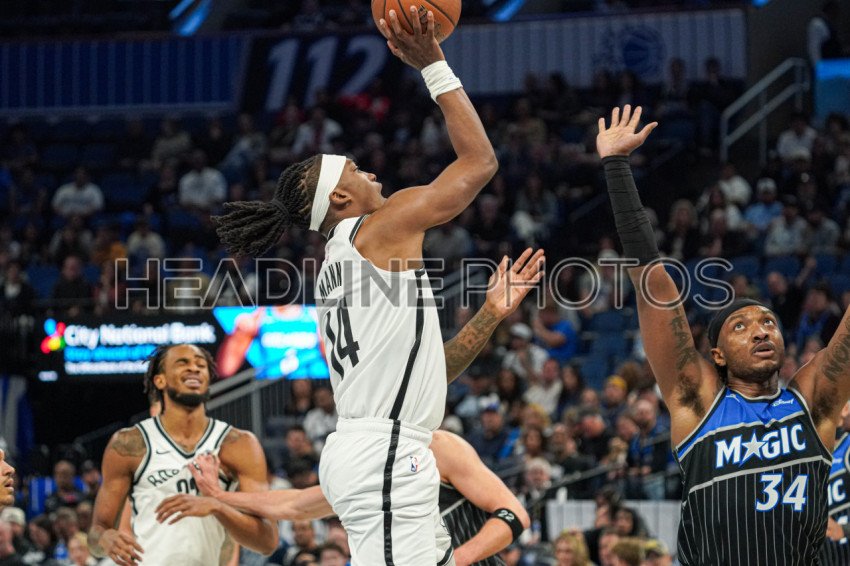 Orlando, Florida, USA, November 14, 2025, Brooklyn Nets guard Terance Mann #14 takes a shot at the Kia Center. (Photo Credit: Marty Jean-Louis)