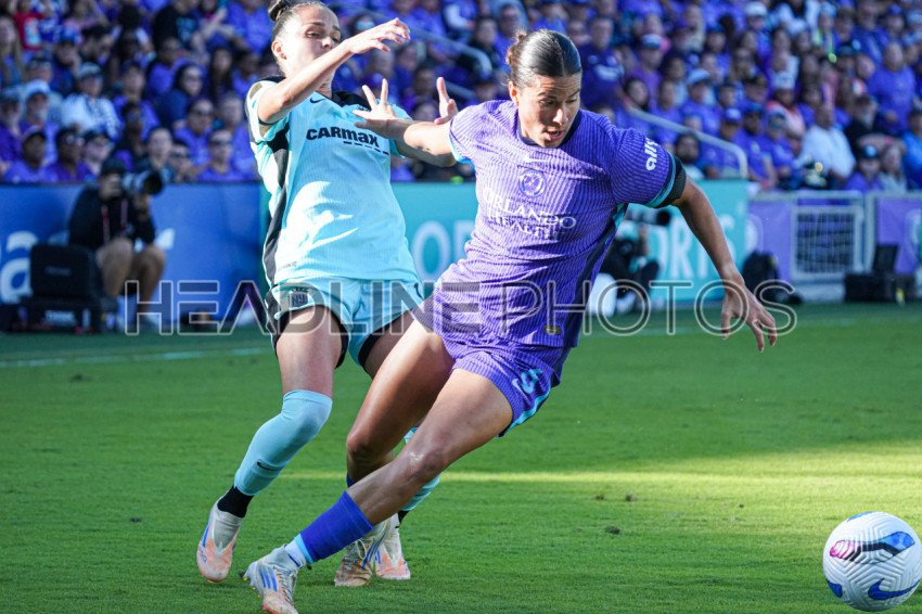 Orlando, Florida, USA, November 16, 2025, Orlando Pride defender Emily Sams #6 defends the ball at Inter&Co Stadium. (Photo Credit: Marty Jean-Louis)