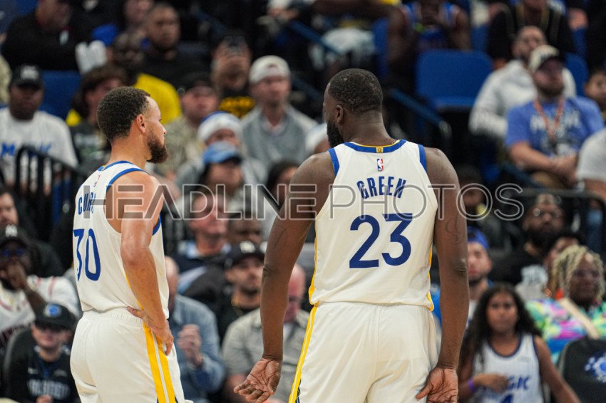 Orlando, Florida, USA, November 18, 2025, Golden State Warriors player Stephen Curry #30 and Draymond Green #23 at the Kia Center. (Photo Credit: Marty Jean-Louis)