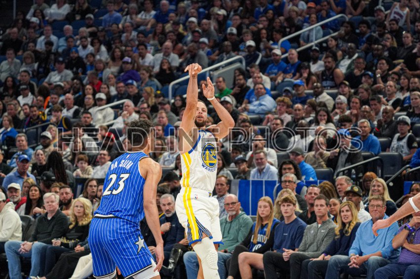 Orlando, Florida, USA, November 18, 2025, Golden State Warriors guard Stephen Curry #30 shoots a three at the Kia Center. (Photo Credit: Marty Jean-Louis)
