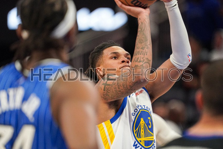 Orlando, Florida, USA, November 18, 2025, Golden State Warriors guard Will Richard #3 shoots a free throw at the Kia Center. (Photo Credit: Marty Jean-Louis)
