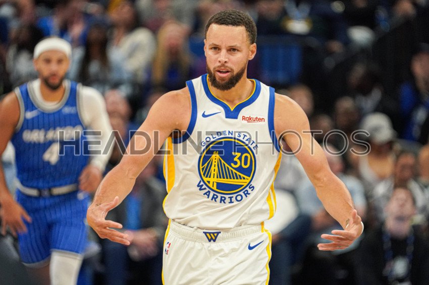 Orlando, Florida, USA, November 18, 2025, Golden State Warriors guard Stephen Curry #30 reacts after scoring at the Kia Center. (Photo Credit: Marty Jean-Louis)