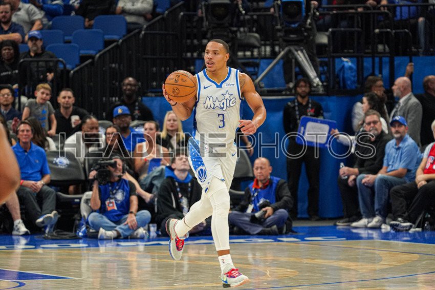 Orlando, Florida, USA, November 20, 2025, Orlando Magic player Desmond Bane #3 rushes forward at the Kia Center. (Photo Credit: Marty Jean-Louis)