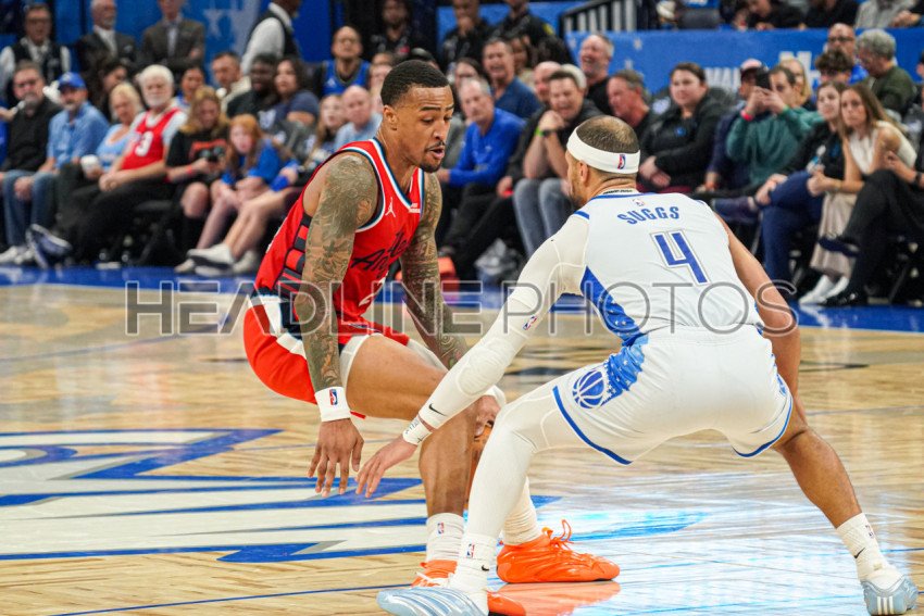Orlando, Florida, USA, November 20, 2025, Los Angeles Clippers forward John Collins #20 attempt to run pass Jalen Suggs #4 at the Kia Center. (Photo Credit: Marty Jean-Louis)