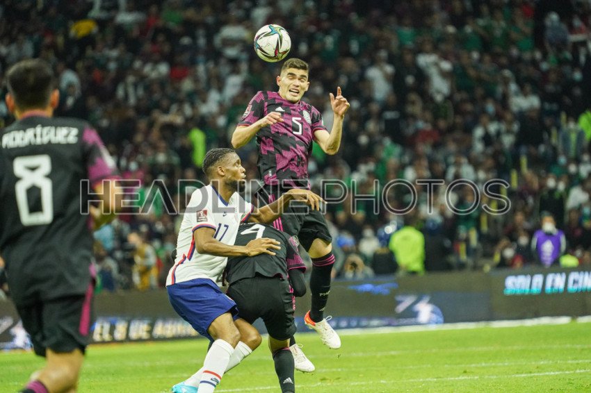 Mexico City, Mexico, March 24, 2022, Mexico Defender Johan Felipe Vasquez Ibarra #5 makes a header in the 2022 World Cup Qualifier at Allianz Field. (Photo Credit: Marty Jean-Louis)